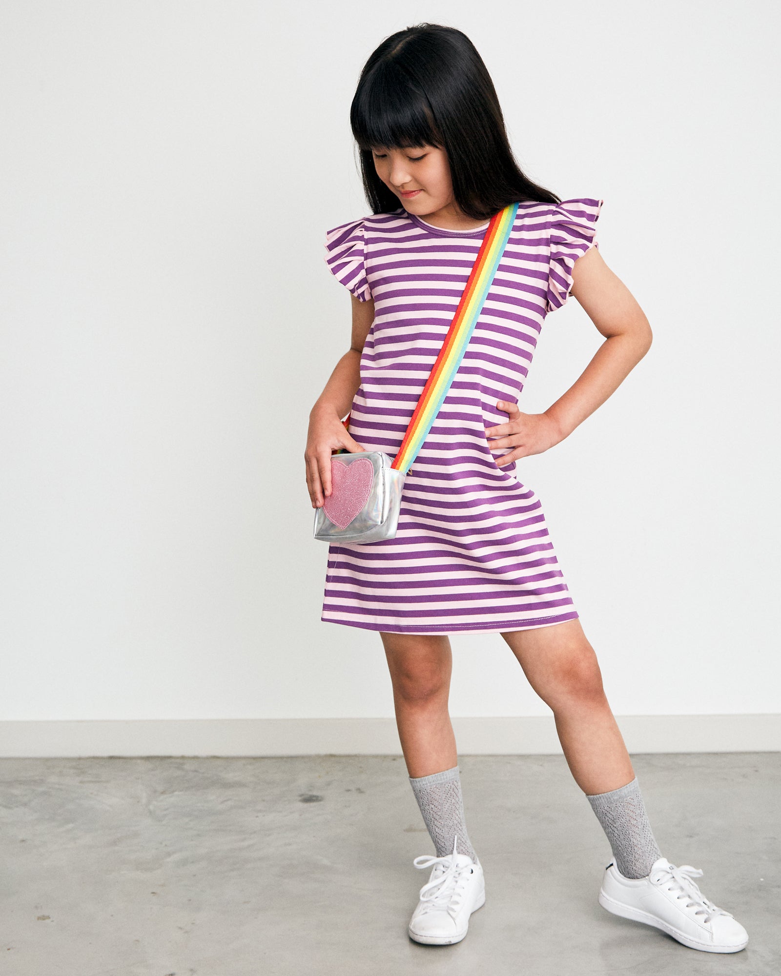 $31.47 AUD $44.95 AUDFlutter T-Shirt Dress in Purple and Pink Stripes